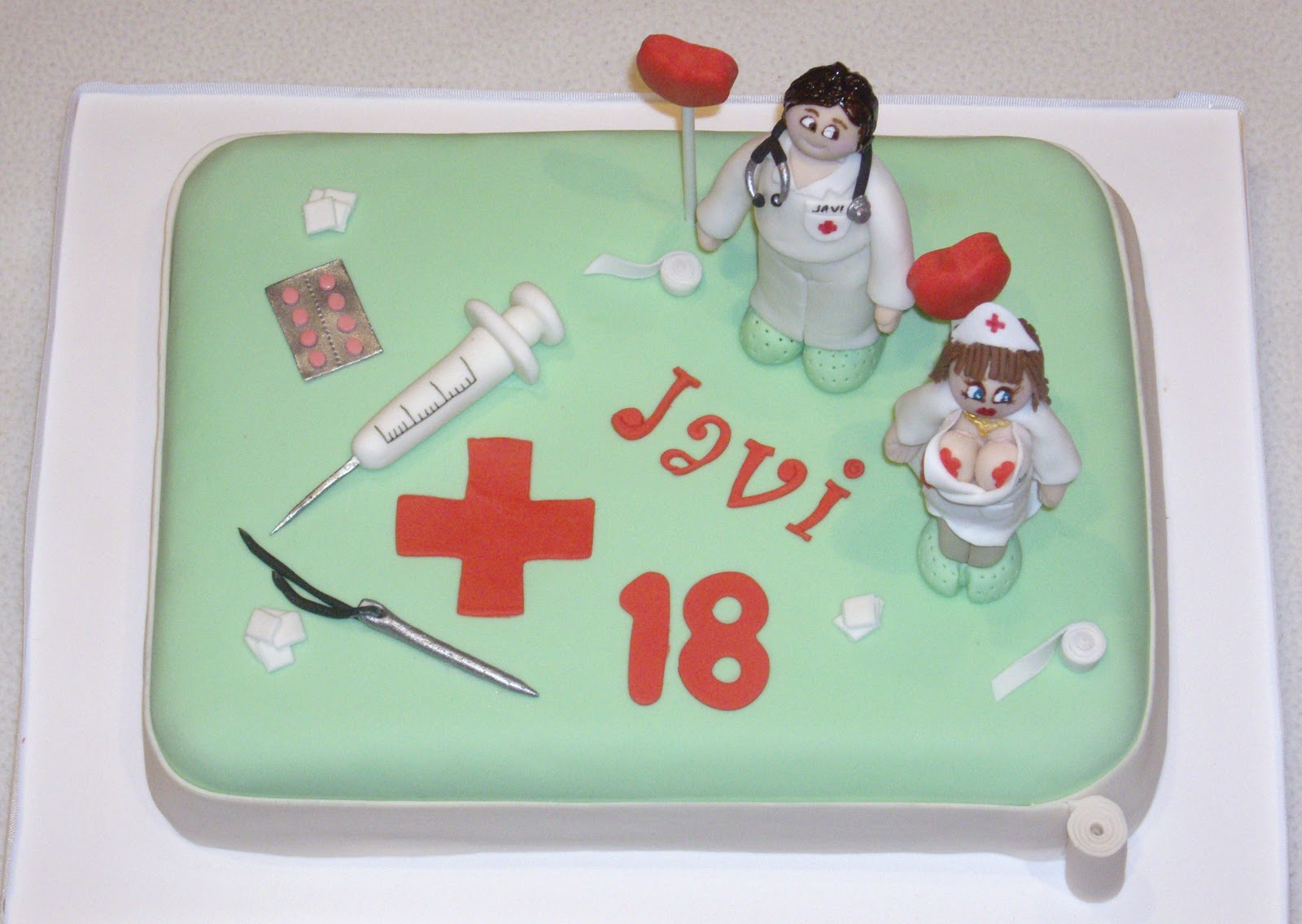Sara y su marido son médicos y ese es el motivo por que hemos hecho estos simpáticos personajes para su tarta....
